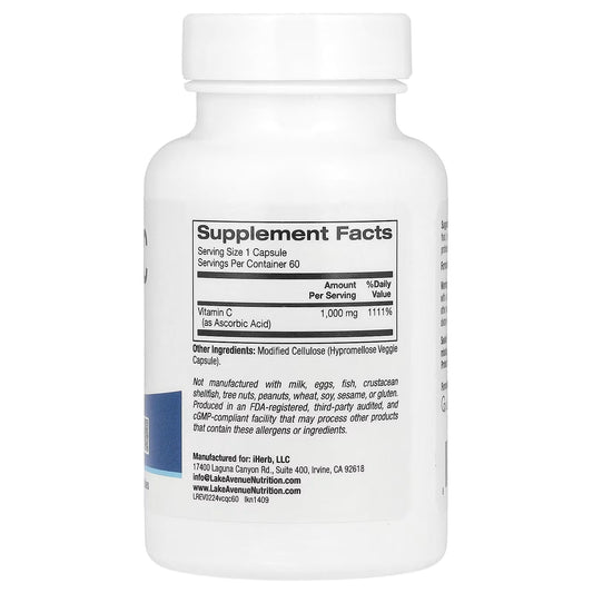 Vitamina C 1.000 mg Quali-C 60 Cápsulas Veganas - Lake Avenue Nutrition