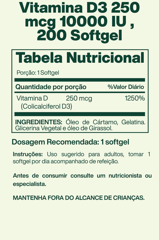 Vitamina D3 250 mcg 10000 IU , 200 Softgel - Spring Valley