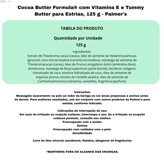 Cocoa Butter Formula® com Vitamina E e Tummy Butter para Estrias, 125 g - Palmer's