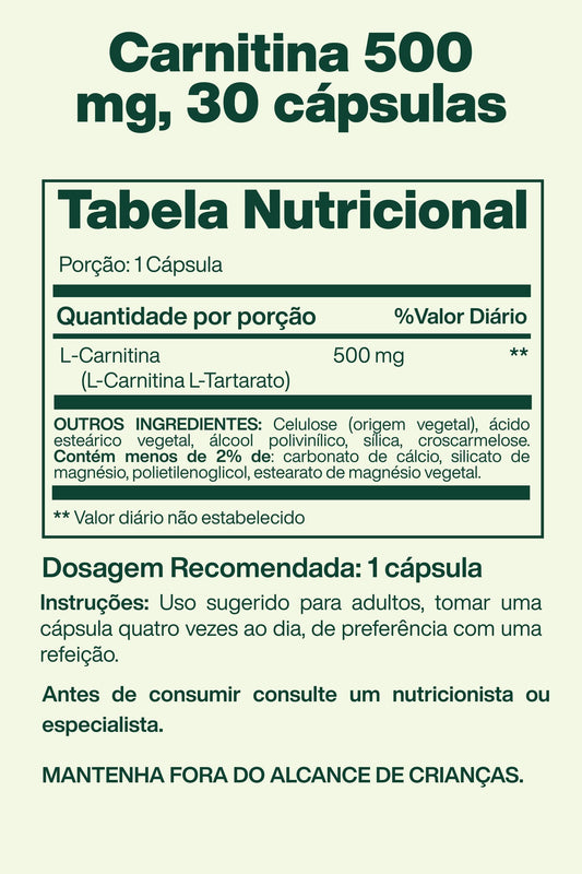 Carnitina 500 mg, 30 cápsulas - Spring Valley