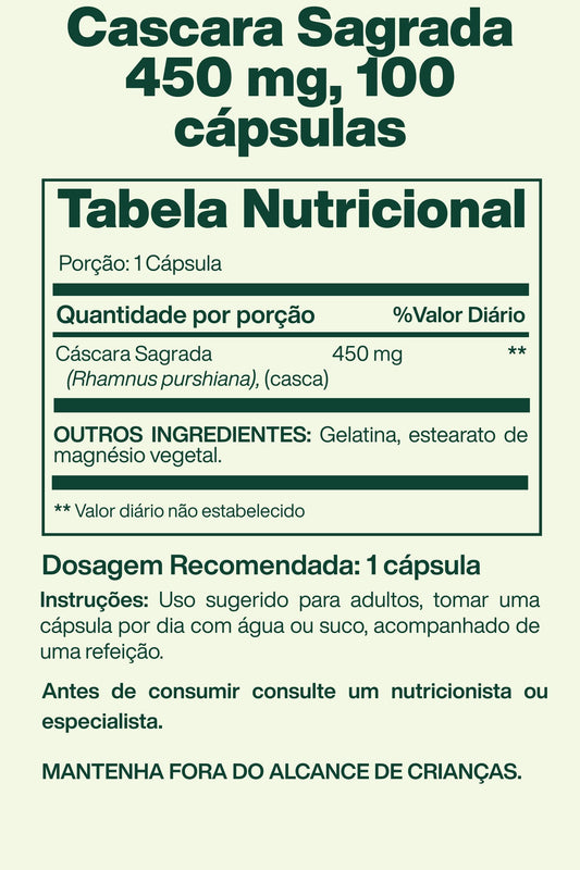 Cascara Sagrada 450 mg, 100 cápsulas - Spring Valley