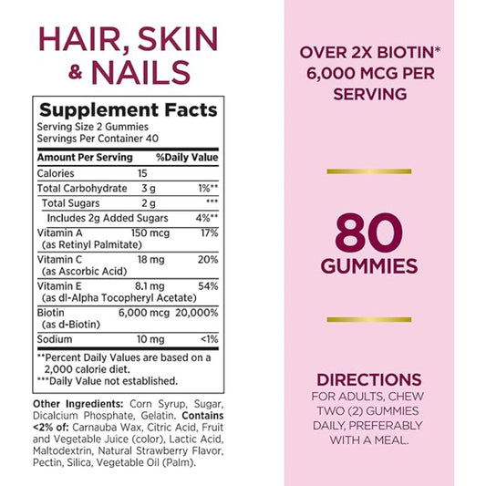 Hair Skins & Nails Advanced 2x Mais Biotina 6000mcg 80 Gomas - Nature's Bounty