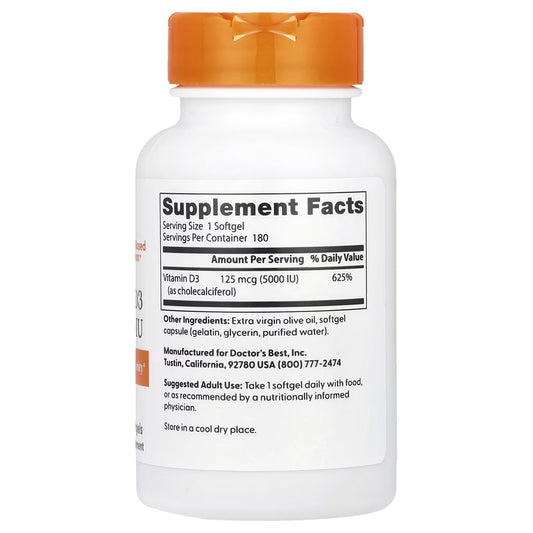 Vitamina D3 125 mcg 5.000 UI 180 Cápsulas Softgel - Doctor's Best