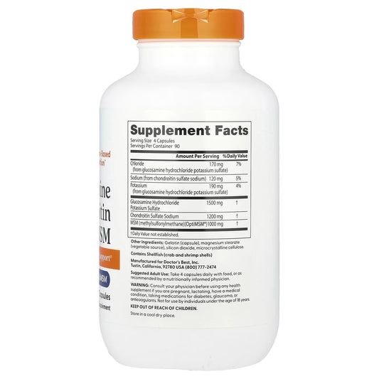 Glucosamina Condroitina MSM com 360 Cápsulas Veganas - Doctor's Best