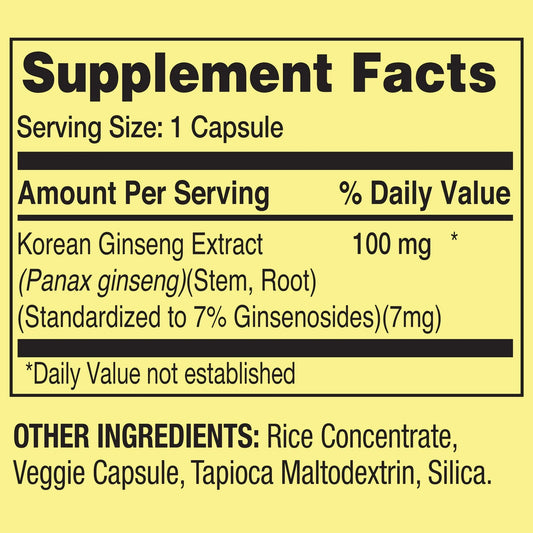 Ginseng Coreano (Panax) 100mg 60 Cápsulas - Spring Valley