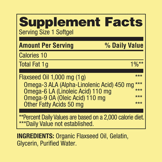 Óleo de Linhaça 1000mg Omega-3 450mg 100 Softgels - Spring Valley