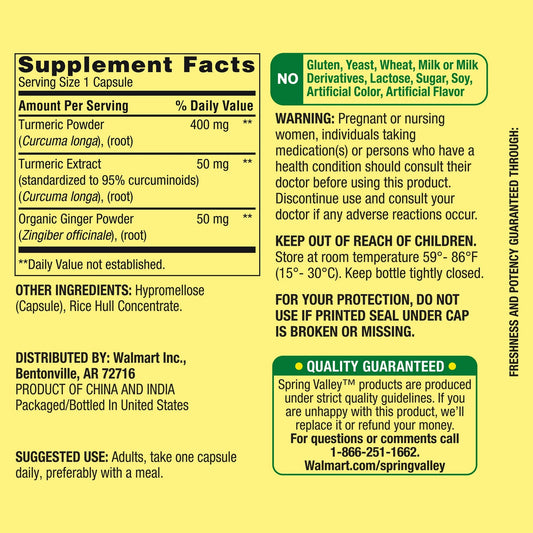 Curcumina Turmeric com Pó de Gengibre 500 mg 180 Cápsula - Spring Valley