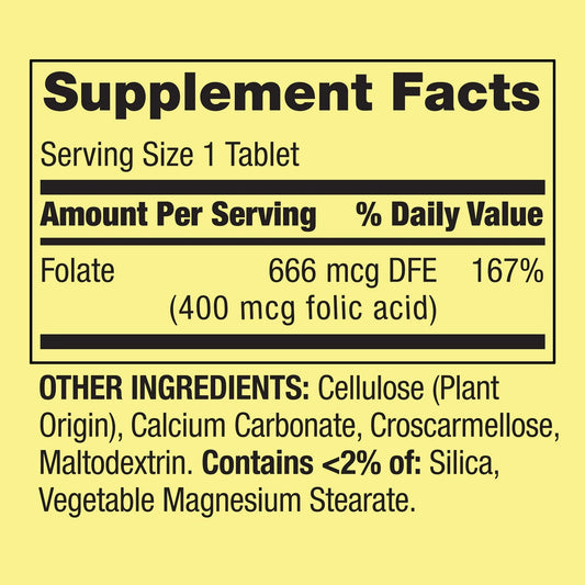 Folato 400mcg com 250 Tabletes - Spring Valley