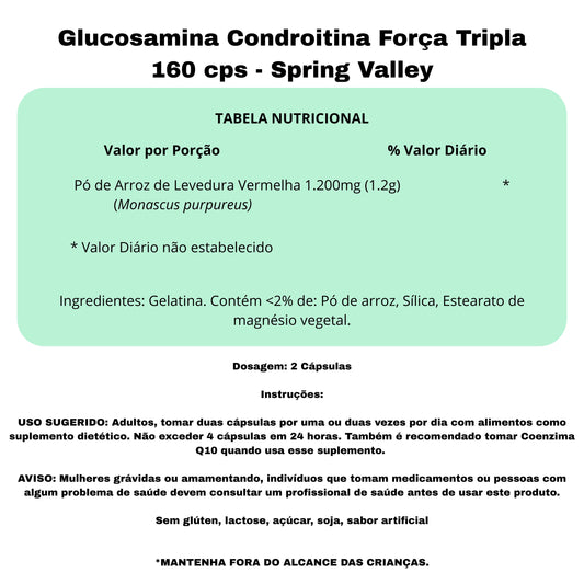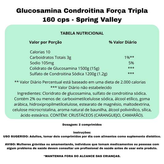 Condroitina Glucosamina Força Tripla 160 cps - Spring Valley