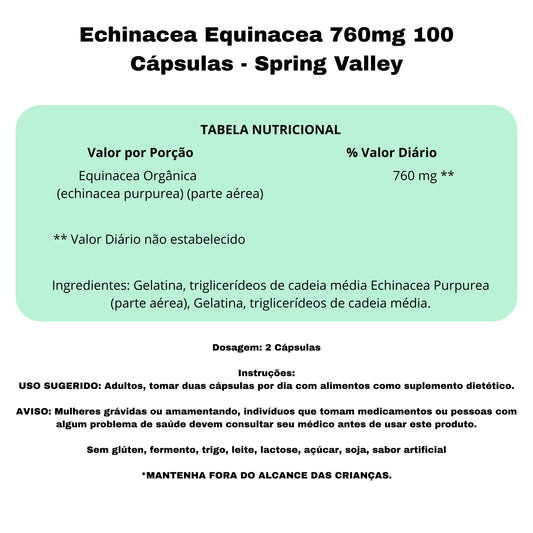 Echinacea Equinacea 760mg 100 Cápsulas - Spring Valley