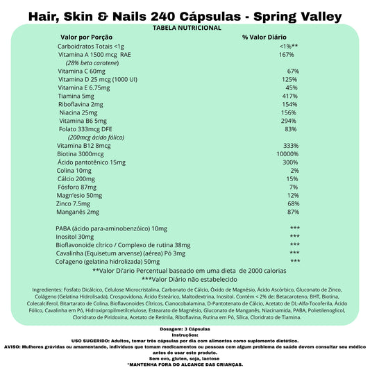 Hair, Skin & Nails 240 Cápsulas - Spring Valley