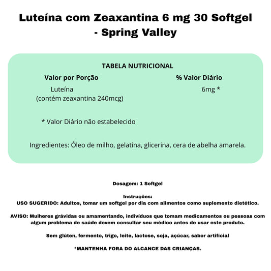 Luteína com Zeaxantina 6 mg 30 Softgel - Spring Valley