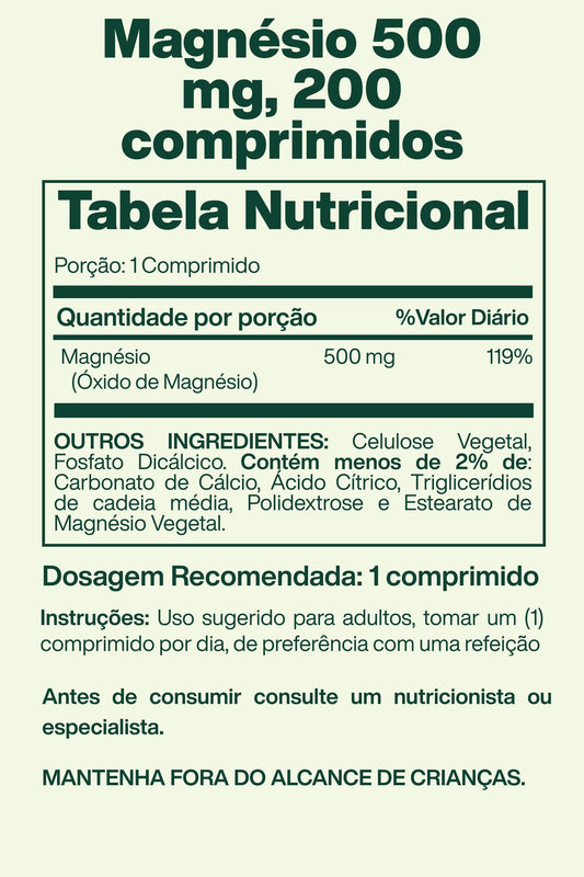 Magnésio 500 mg, 200 comprimidos - Nature's Bounty