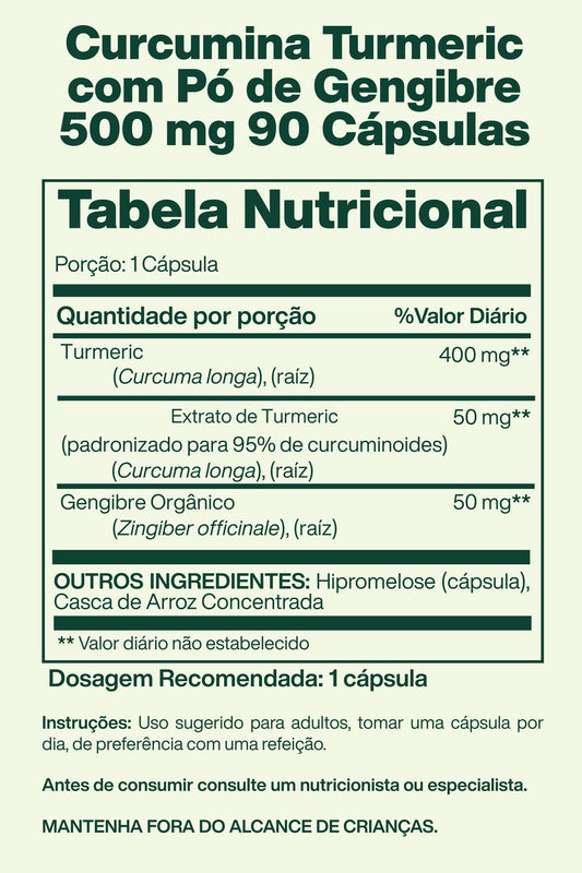 Curcumina Turmeric com Pó de Gengibre 500 mg 90 Cápsulas - Spring Valley