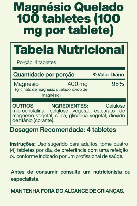 Magnésio Quelado 100 tabletes (100 mg por tablete) - Solgar