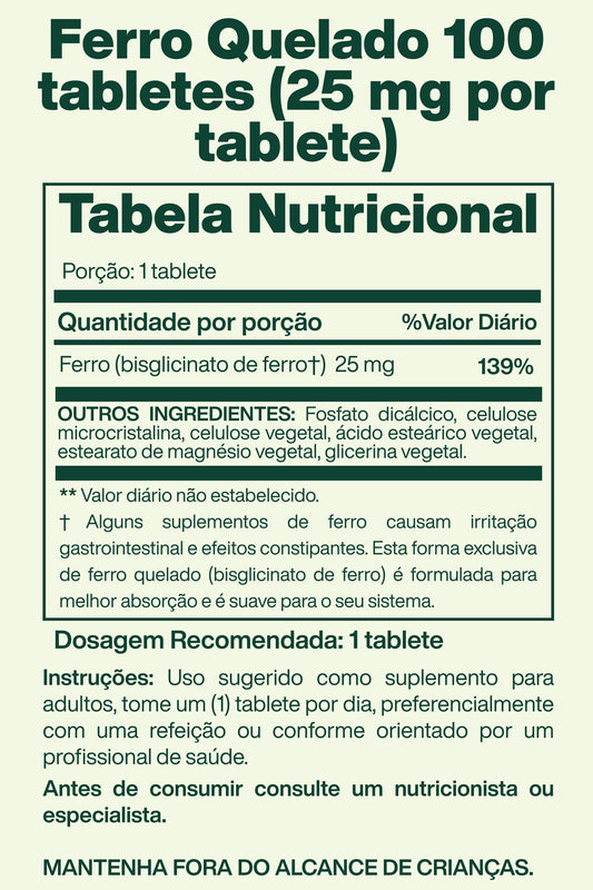 Ferro Quelado 100 tabletes (25 mg por tablete) - Solgar