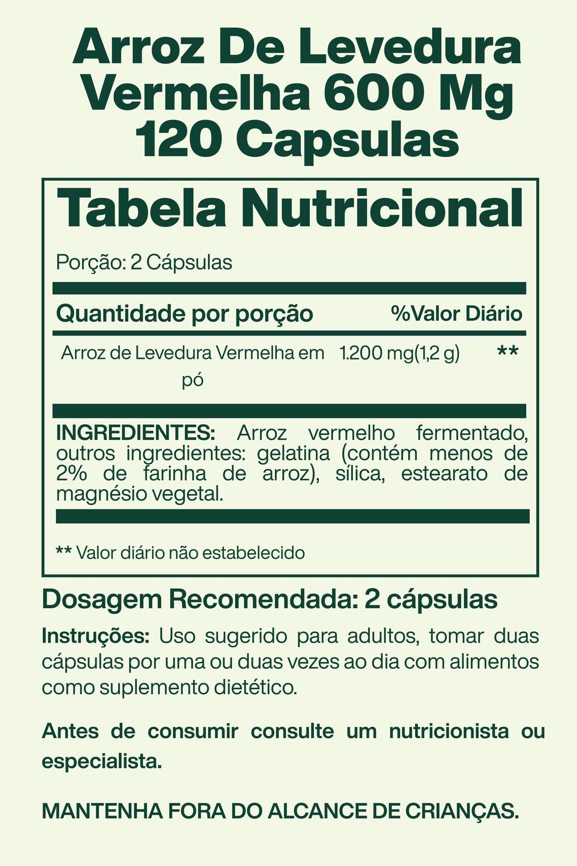 USO SUGERIDO: Adultos, tomar duas cápsulas uma ou duas vezes por dia com alimentos como suplemento dietético.