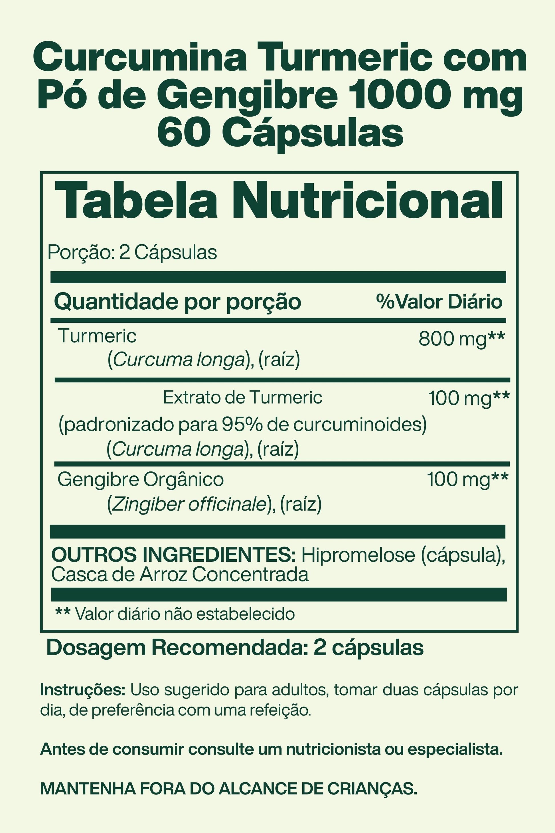 Curcumina Turmeric com Pó de Gengibre 1000 mg 60 Cápsula - Spring Valley